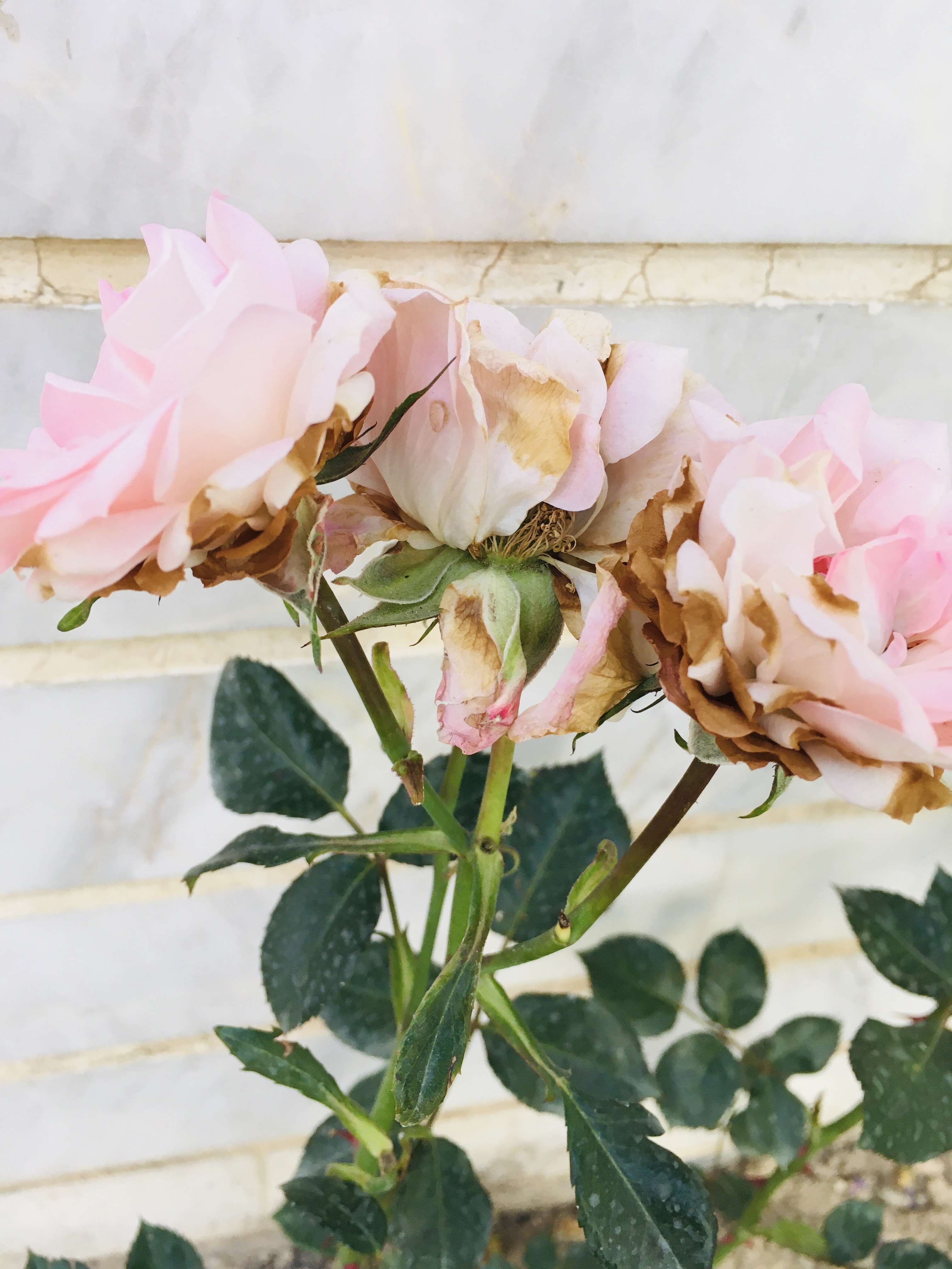 گل های رز باغچه شروع کردن اول بهاری به کمی از بین رفتن. طبق فرضیه خودم قارچی شدن . سفیدک پودری